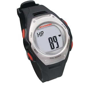 Product Description : Amazon.comThe Schwinn Elite Combo Heart Rate Monitor displays accurate ECG heart rate with or without a chest belt. It features an on-demand strapless heart rate with buttonless sensor technology which allows you to touch anywhere on the case to display your accurate ECG heart rate. Additionally, the watch offers continuous heart rate technology, providing accurate ECG continuous heart rate using the included chest belt. This full-featured sports watch has many other features, including tracking calories burned, time of day, total fat burn, high/low target zone with an alarm, and more. Product Description : Schwinn elite combo heart rate monitor watch touch anywhere on case to display accurate ECG heart rate. The Schwinn elite combo unit works with or without using the chest belt. Chest belt included for continuous heart rate, Strapless technology for accurate heart rate without using the chest belt. Time of day, Hi/Lo target zone with alarm, calorie counter, average heart rate, % of maximum heart rate, 100 hour stopwatch, back light, water resistant, button-less heart rate technology.   Very happy with choice! I was hesitant because there were no reviews, but it works better than I could have hoped. It works quickly without the chest strap and continuously with the strap. It even works with my Schwinn exercise bike; the reading comes up accurately on the digital screen, same as on the watch. I gave up trying to get a good reading off the bikes handles long ago.   It's been about 2 weeks since the Schwinn Elite Combo Heart Rate Monitor arrived. I'm a reasonably active 46 year old male around 5'11" 165lbs and need to monitor my heart rate for health reasons.I chose this make/model because it has the option to get data with no chest strap--handy if you want to check your pulse while on a hike in the park or lunchtime stroll. The good news is that the touch reading is very accurate, however there's a problem getting a reading in the cooler weather (below 40 degrees) especially when you're starting your workout. Sometimes a bit of saliva on the fingertips helps, but the chances of getting a reading are 50/50 until you get a little perspiration going or a more rapid beat.With the chest monitor on, Lifecycle equipment reads the signal strongly and accurately--great when you're in the gym.I'm hanging on to this piece of technology while keeping an eye on market advances in the combo touch/chest strap arena.   This is a decent watch made of better than average materials and is intuitive to use.The only negative is that it does not consistently return your measured heart rate, because it is apparantley sensitive to perspiration on the skin. The chest band is made for people with small diameter torsos and is unconfortable to wear.