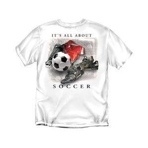 Category: Sports & Outdoors Vendor: Adult Large Product Description : DELTA It's All About Soccer White color T-Shirt100% CottonPrint Location: Back/ Front Left Chest