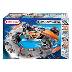 builds 20 different models, 1 at a time super mechanical movement come with 3volt motor, 2-AA batteries not included tools + in
