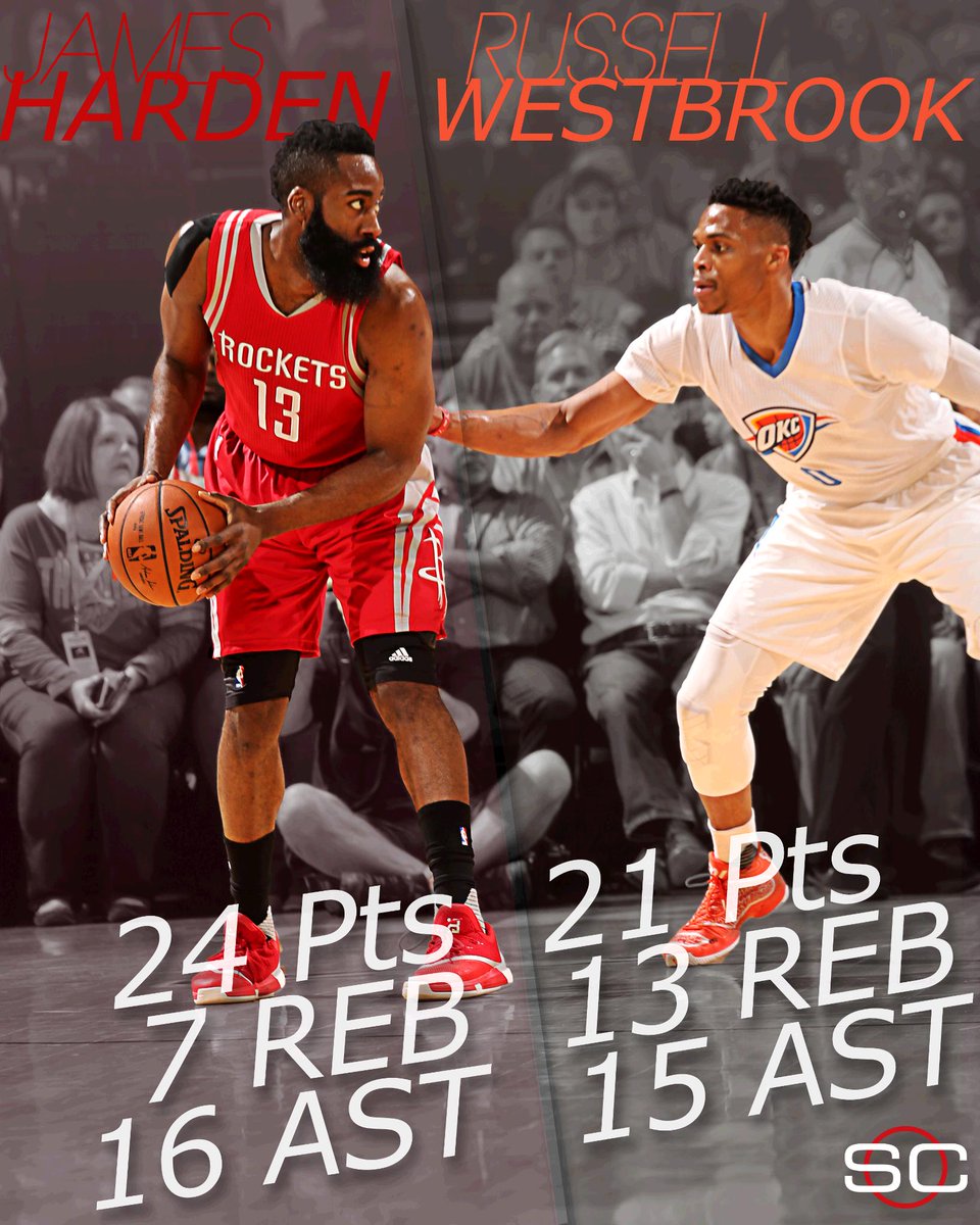 James Harden has career-high 16 Ast & Russell Westbrook records a triple-double as Thunder defeat Rockets, 111-107.